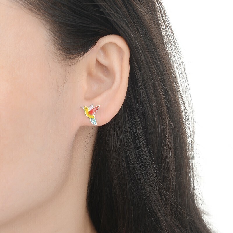 Aros de Plata 925 con forma de Colibrí esmaltado en color. Un regalo especial!