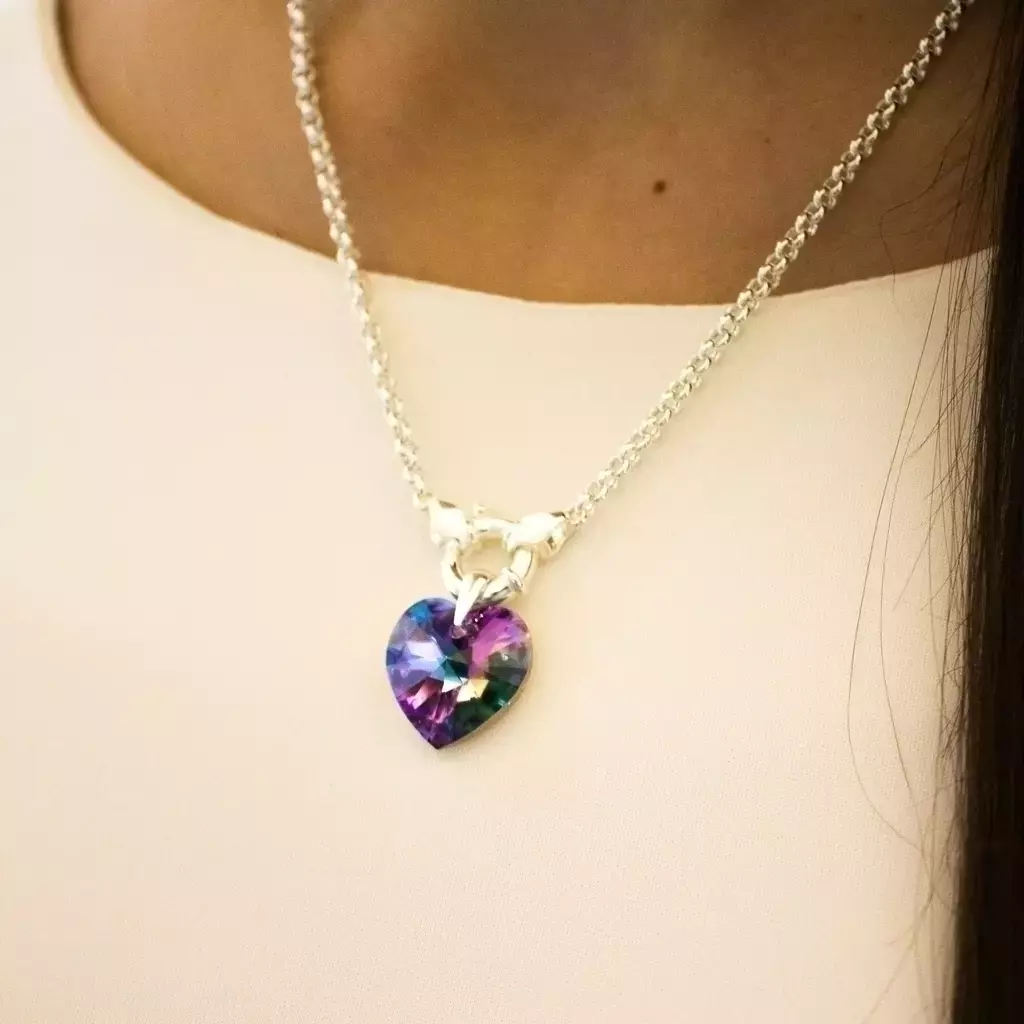 Descubre el famoso dije de corazón de 18mm, elaborado con cristal SW de excepcional calidad. Esta joya, engarzada en plata, resplandece con un brillo inigualable, convirtiéndola en un regalo perfecto para esa persona especial.