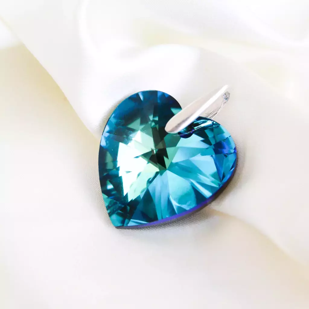 Descubre el famoso dije de corazón en cristal SW, una joya que resalta por su deslumbrante color azul. Este elegante dije, engarzado en plata de alta calidad, es el complemento perfecto para expresar tus sentimientos.